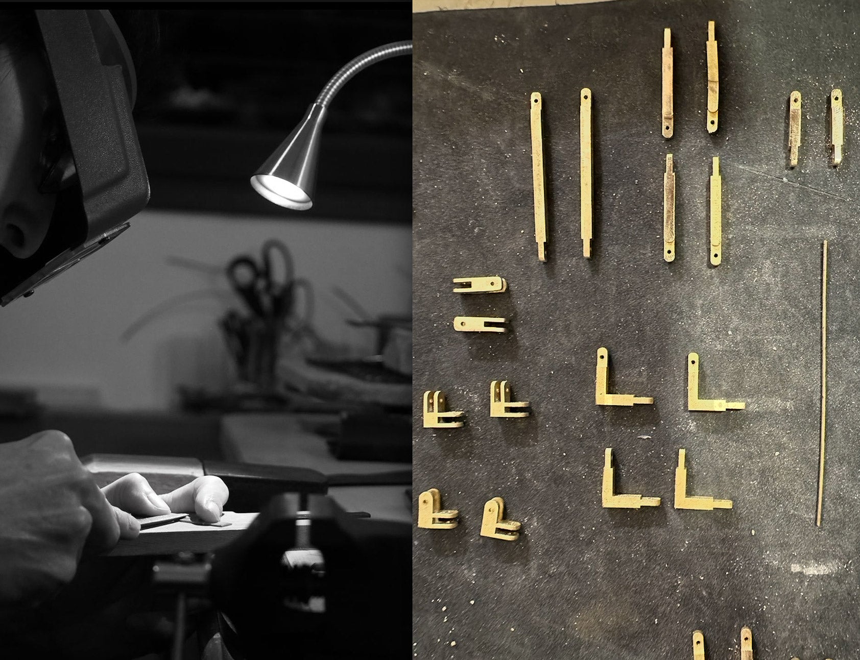 "The deeper I delved into metal smithing, the more I found myself experimenting with different alloys, planar surfaces, and small, geometric forms, striving to introduce fluidity and softness into the inherent rigidity of metal. I explored passage of light and architectural openings, playing with axes and connections."