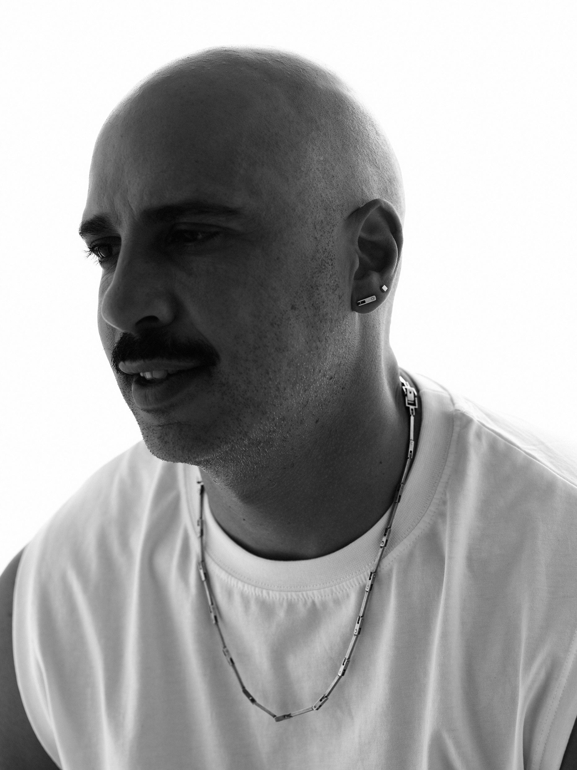 Stud earring of aBrazg's unique element link. With its architectural-inspired design, this minimal stud earring suits every earring stack.