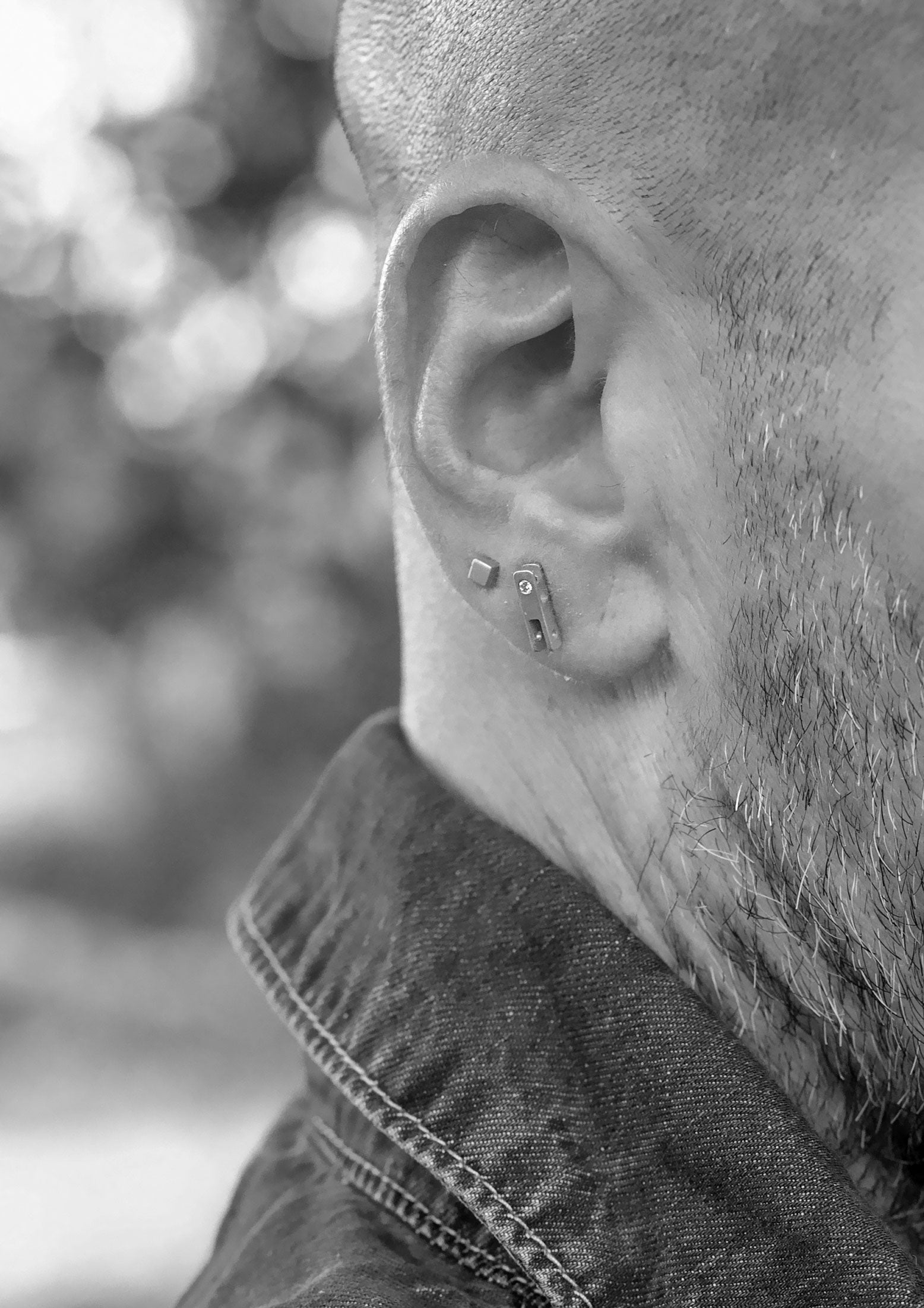 Stud earring of aBrazg's unique element link. With its architectural-inspired design, this minimal stud earring has a subtle sparkle and suits every earring stack.