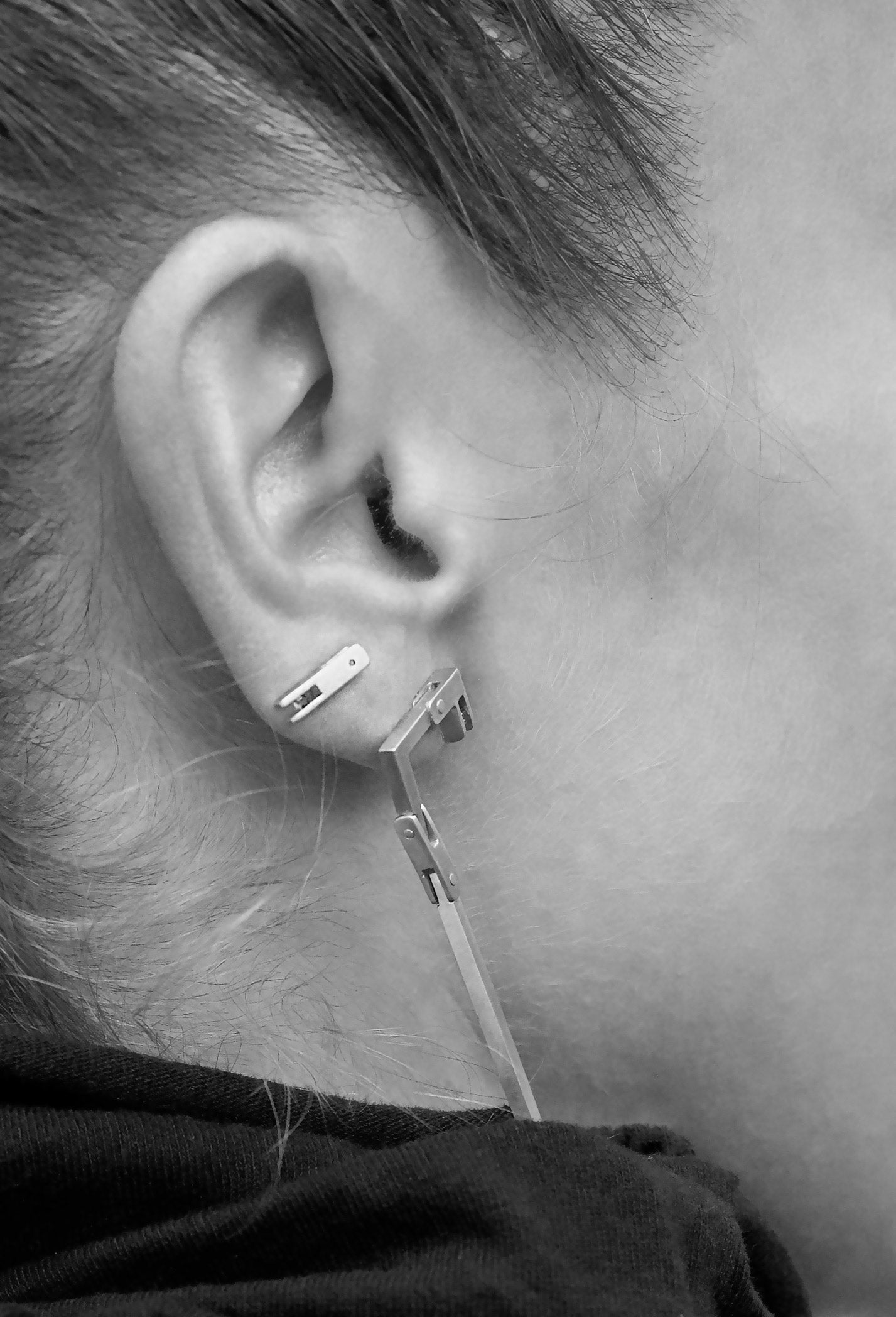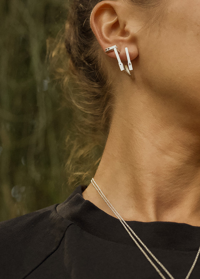 Stud earring of aBrazg's unique element link, with a stone embellishment. With its architectural-inspired design, this minimal stud earring has a subtle sparkle and suits every earring stack.